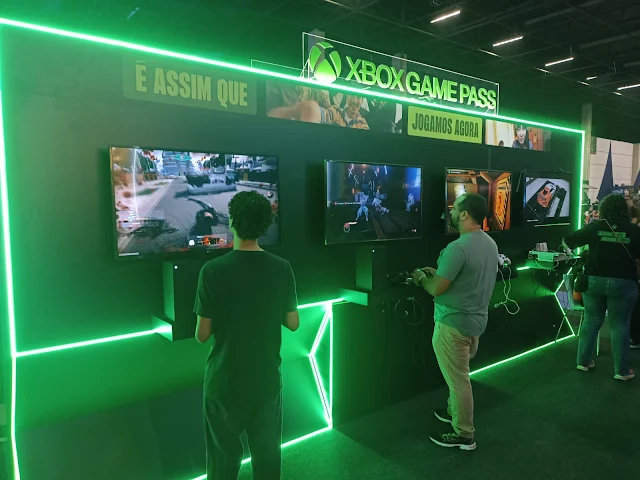 Os gamers tiveram seu paraíso particular. Os estandes eram verdadeiros parques de diversão digitais, com telas gigantes, competições e brindes exclusivos.
