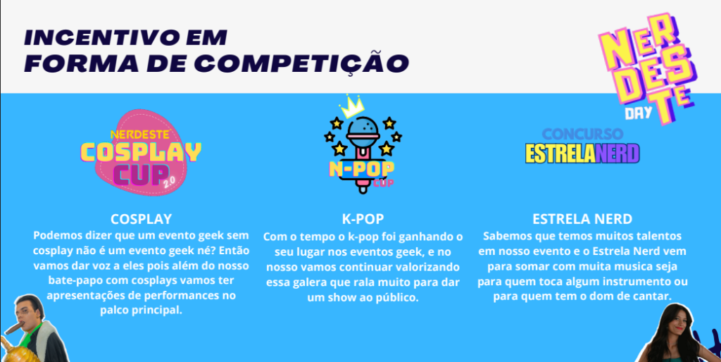 O Nerdeste Day é um espaço onde o talento encontra o reconhecimento. O palco principal recebe apresentações de K-pop, performances de cosplay, o concurso Estrela Nerd, e o aguardado Cosplay Cup, que valoriza quem transforma arte e dedicação em espetáculo. Além disso, o evento traz o bate-papo com criadores, dubladores e quadrinistas, comandado pelo pessoal do podcast The Nerd Theory, criando uma ponte entre fãs e profissionais que fazem a cultura geek acontecer.